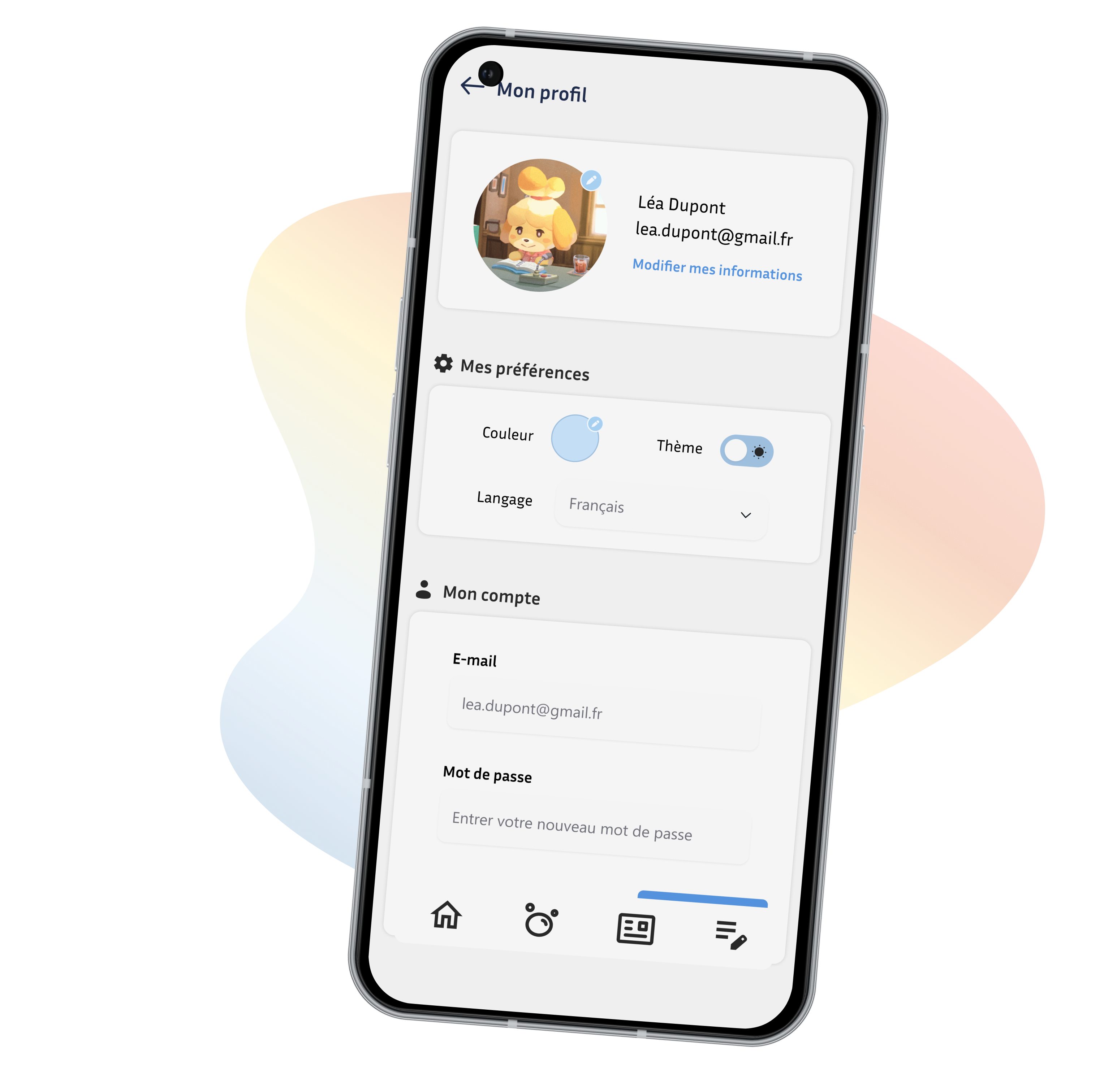 Changer la couleur de votre château, créez vos propres cartes émotionnelles et écrivez vos textes dans votre espace personnel.